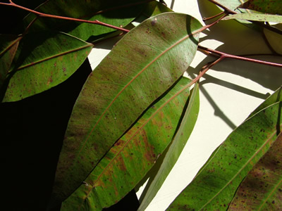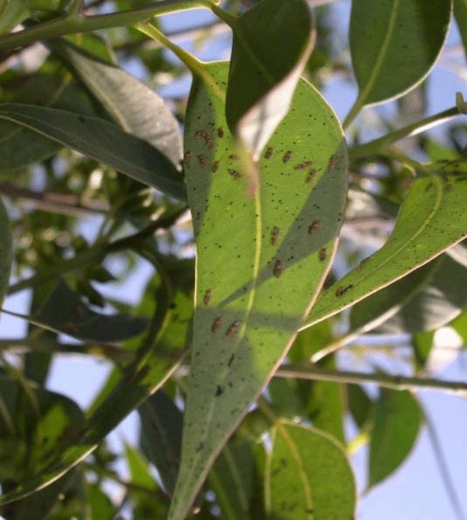 Chinche originaria de Australia que afecta a varias especies de eucalipto, causando daños en las hojas y debilitando los árboles.